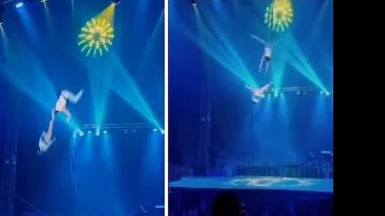 A causa do acidente não foi revelada, mas a suspeita é que o aparelho que sustenta os artista tenha se rompido.