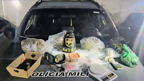 Durante a abordagem, os militares encontraram dois quilos de maconha no interior do carro, além de 30 gramas de haxixe, dois comprimidos de ecstasy, uma faca e duas balanças de precisão.