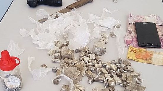 Quatro mandados de busca e apreensão, expedidos pelo juiz em exercício de Traipu, Douglas Becauser, foram cumpridos. Em uma casa de cachorro, no quintal de uma uma residência no Conjunto Habitacional Antônio Medeiros Neto, logo na entrada do município, foram encontradas quantidade de drogas, uma faca, um simulacro de arma e R$ 40,00 em dinheiro.
