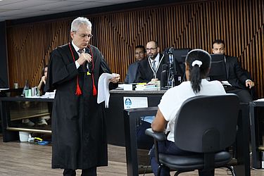 O julgamento de Arnóbio Henrique Cavalcante Melo, réu pelo assassinato da ex-esposa, a advogada Joana de Oliveira Mendes, começou por volta das 10h da manã desta segunda-feira (1º). A audiência, que está acontecendo no Fórum do Barro Duro, na parte alta da capital alagoana, é conduzida pelo juiz Yulli Roter Maia, titular da 7ª Vara Criminal da Capital.