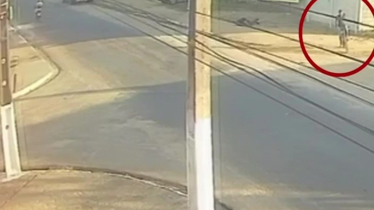 Já outra câmera, posicionada em um ângulo diferente, mostra Raul efetuando um disparo na cabeça de Joba, que cai ao chão em seguida. A ação criminosa dura poucos segundos, e o executor foge tranquilamente em sua bicicleta.