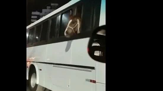 Um cavalo foi flagrado dentro de um ônibus no trânsito de Criciúma, no Sul catarinense. O registro foi feito por um morador durante um engarrafamento.