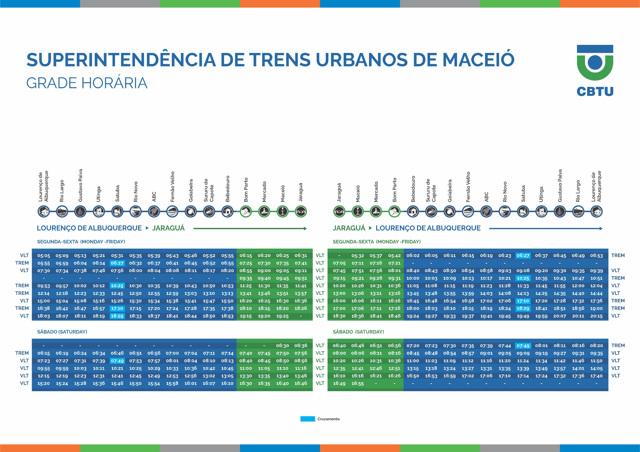 Diante do cenário, a CBTU Maceió disse ter sido obrigada a revisar a grade horária, e adequá-la à atual realidade, com base em critérios técnicos operacionais, na necessidade da maioria dos passageiros, e na sustentabilidade financeira da instituição.