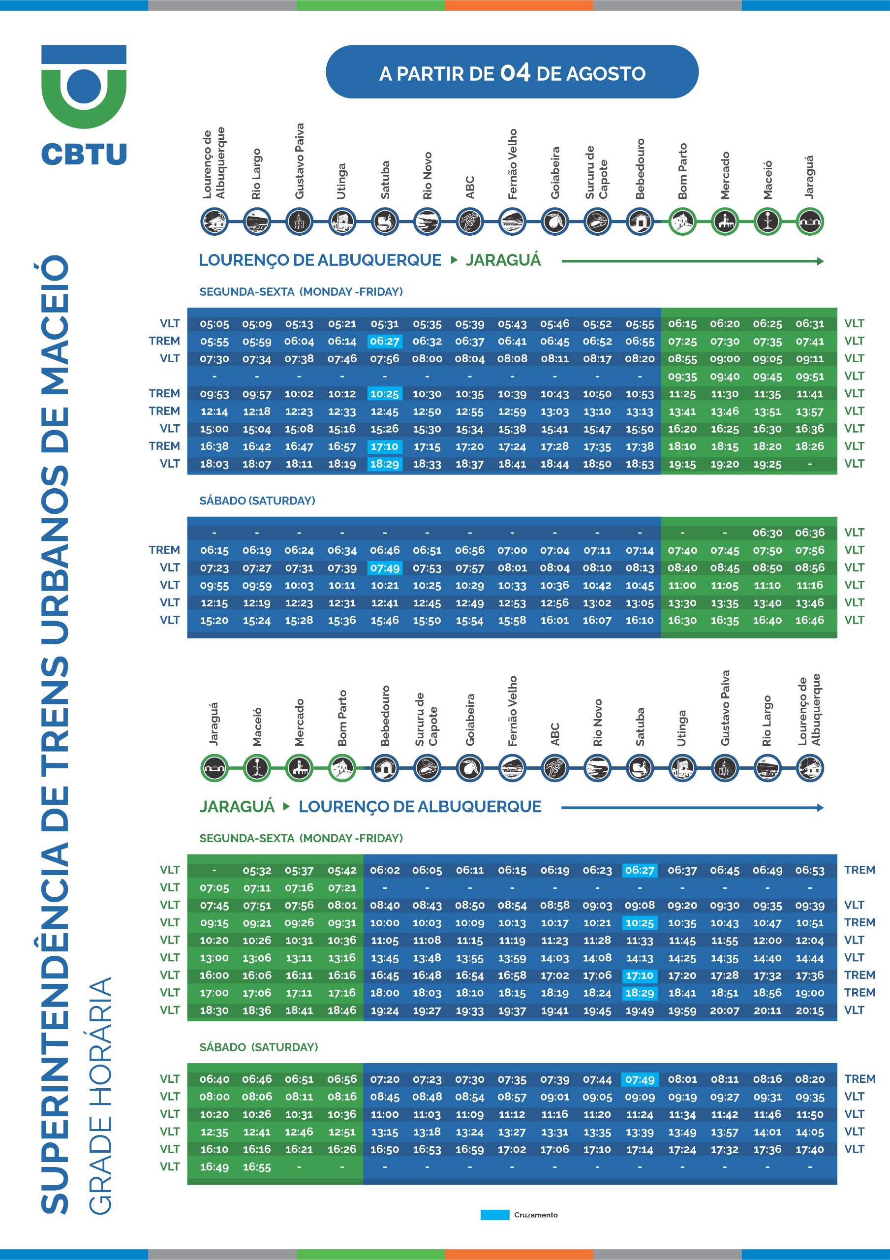 A Companhia Brasileira de Trens Urbanos (CBTU) – Superintendência de Maceió – anunciou a mudança na grade horária de viagens do sistema ferroviário da Região Metropolitana de Maceió. A medida, segundo a Companhia, foi necessária diante dos limites financeiros para 2025, ocasionados pelo congelamento no orçamento imposto pelo Governo Federal.