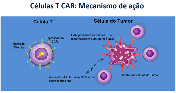 Com auxílio de um vetor viral (um vírus cujo material genético é alterado em laboratório), um novo gene é introduzido no núcleo do linfócito T, que então passa a expressar em sua superfície um receptor (uma proteína) capaz de reconhecer o antígeno específico do tumor a ser combatido.