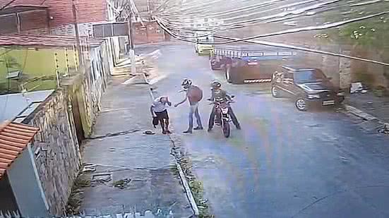 Vídeo mostra assalto e disparo - Imagens gravadas por uma câmera de segurança mostram o momento do crime. No vídeo, dá para perceber o momento em que José Amaro, que segura uma bolsa, olha para trás e observa os dois suspeitos na moto. Ele atravessa a rua, mas é rendido pela dupla armada.