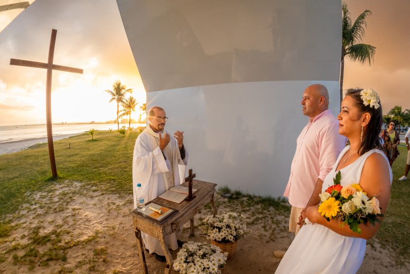 “Como somos católicos decidi realizar essa bênção. Ela viu a capelinha, uma cerimônia que foi postada nas redes sociais, e sempre me falava que queria casar em Maceió. Graças a Deus, e pela ajuda dos nossos amigos, estamos conseguindo realizar esse sonho. Gostamos muito daqui e voltaremos para nossa cidade natal com esse presente de poder realizar o sonho dela nesse lugar tão maravilhoso”, explicou Rovilson sobre a escolha do local.