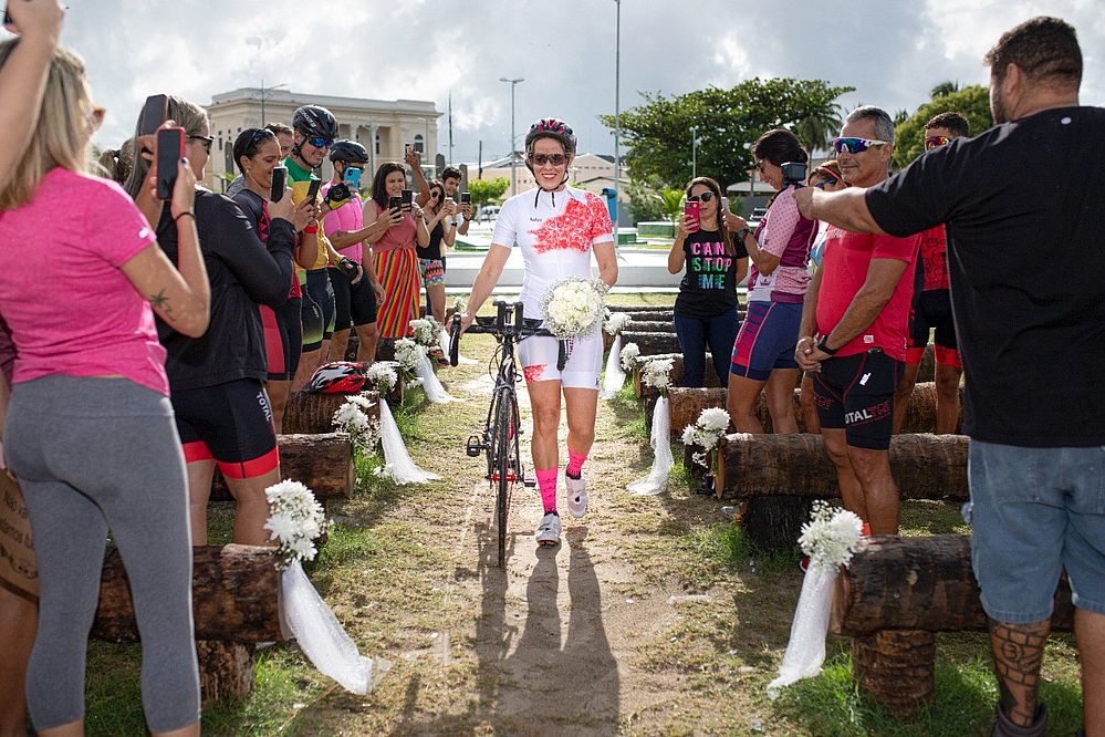 “Sempre que vamos treinar passamos pela Capelinha, então achamos interessante juntar o esporte e a cerimônia, onde pudéssemos chamar nossos amigos do triathlon e fazer com que esse fosse um momento criativo, diferente. Estamos juntos há cinco anos, nos encontramos no esporte, e por isso tivemos a ideia de celebrar nossa união de maneira desportiva”, contou Welton sobre a ideia do casal.