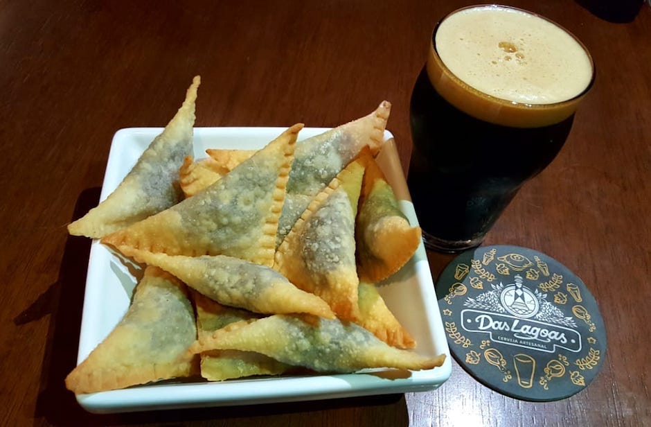 Pastel – Os adeptos do mundo de comidas sem origem animal, os veganos, podem comemorar. A cozinha DasLagoas continua com os petiscos bons, o pastel de funghi é um deles. A cerveja indicada é Carvoeira, da cervejaria Lohn Bier, de Santa Catarina, uma clássica, premiada e complexa. Leva adição de funghi.