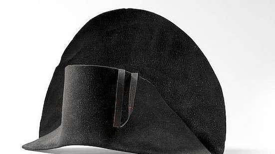 O chapéu em questão é um daqueles que sempre vemos nas pinturas de Napoleão e outras figuras proeminentes da época da Revolução Francesa. O modelo se chama bicorne ou bicórneo, e se caracteriza por ter dois bicos com abas largas que são recolhidas para cima.