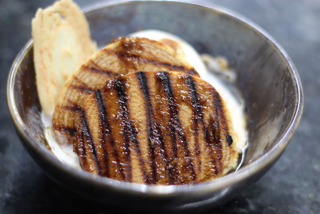 Fruta – A grata surpresa é a farofa de maracujá. Super crocante e de sabor marcante e sem acidez. A iguaria acompanha o polvo maçaricado e ainda tem o purê de abóbora e espuma de coco.