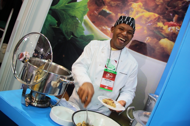 O quintal do restaurante Mama Pereira é na bela e serena praia de Japarantinga, litoral norte de Alagoas, e quem comanda a cozinha é o Nêgo, apelido de Ivonaldo Pereira, o rapaz de sorriso aberto. Ele faz o maior sucesso no Festival de Turismo de Gramado com sua gastronomia de frutos do mar, mas este ano teve mudanças, os visitantes da feira saborearam a receita bem nordestina, charque desfiado com farofa de banana. E em menos de três horas, no evento, a comida evaporou.