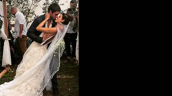 Laura usou um vestido branco longo, sem mangas, assinado por Emanuelle Junqueira, coque e véu nos cabelos. Já Chay usou terno em tom azul e camisa semiaberta bege clara à lá Ícaro, seu último personagem na novela global Segundo o Sol.
