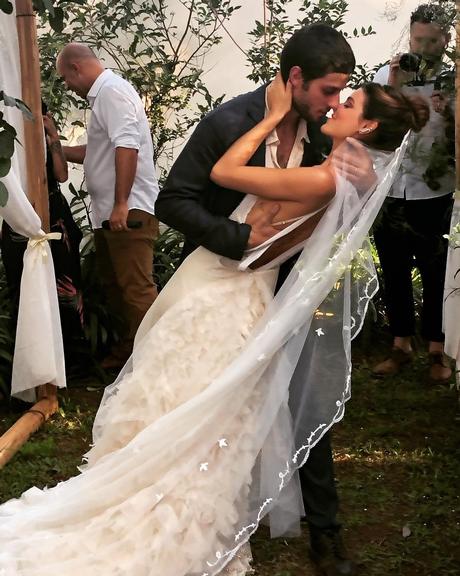 Em cerimônia intimista, eles oficializaram união ao lado de familiares e famosos, como Alice Wegmann, Sasha Meneghel, João Vicente de Castro e Ingrid Guimarães, na casa do ator, localizada no Alto de Pinheiros, Zona Oeste da capital paulista.