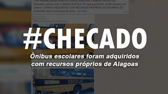 Circula em grupos do WhatsApp a informação de que ônibus escolares supostamente doados pelo Ministério da Educação teriam sido plotados com adesivos do Governo de Alagoas. A mensagem é enganosa. Os ônibus são padronizados pelo FNDE (Fundo Nacional de Desenvolvimento da Educação), mas foram adquiridos com recursos próprios do Estado de Alagoas e parte da frota foi adesivada com os símbolos do programa Escola 10.