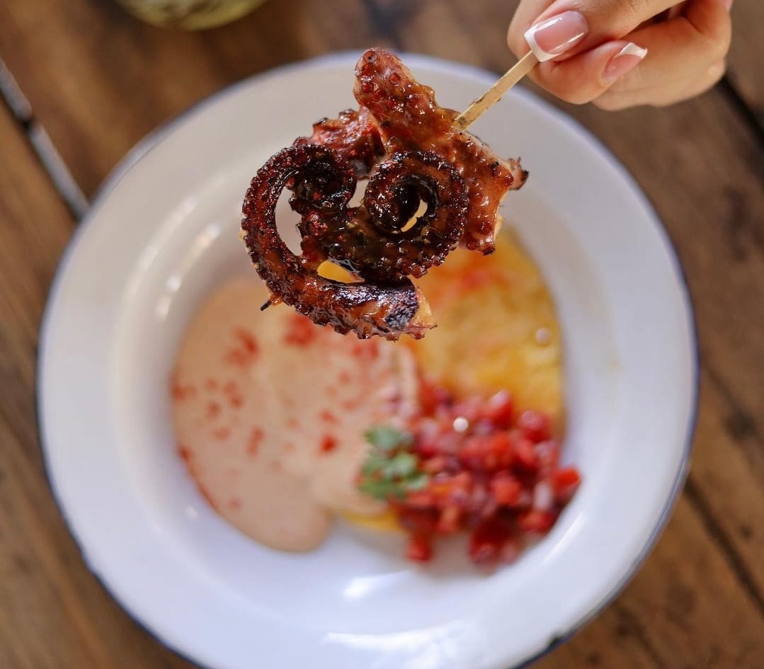 Taco nordestino com polvo grelhado e maionese de kimchi