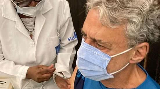 O artista postou o momento em suas redes sociais e escreveu: "Vacinem-se. Viva o SUS!".