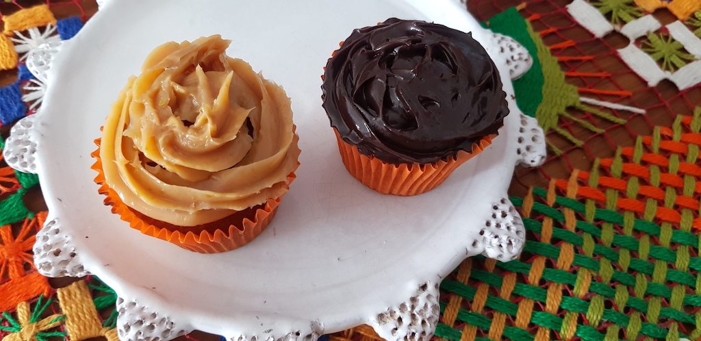 Pode Siim: Os bolinhos com cobertura de brigadeiro de chocolate e de laranja, ambos sem lactose e sem glúten