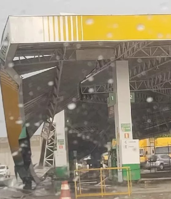 Outro posto de combustível foi atingido pelas rajadas - Em Maceió, o teto de um posto de combustíveis no Clima Bom desabou após a ação dos ventos. Dois caminhões teriam sido atingidos pela estrutura. No momento que houve o desabamento, pessoas estavam no local, mas não houve o registro de feridos.