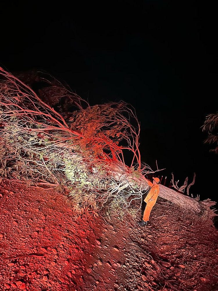 Queda de árvores em Penedo - O Corpo de Bombeiros registrou quedas de árvores em Penedo. Segundo os militares, elas caíram em uma estrada após o ventos fortes. Uma guarnição foi até o local e realizou cortes nos troncos para desobstrução da via.