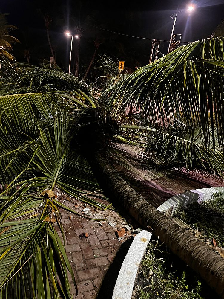 Há relatos também de que os ventos fortes derrubaram outdoors colocados ao longo da Avenida Josepha de Melo, em Cruz das Almas.