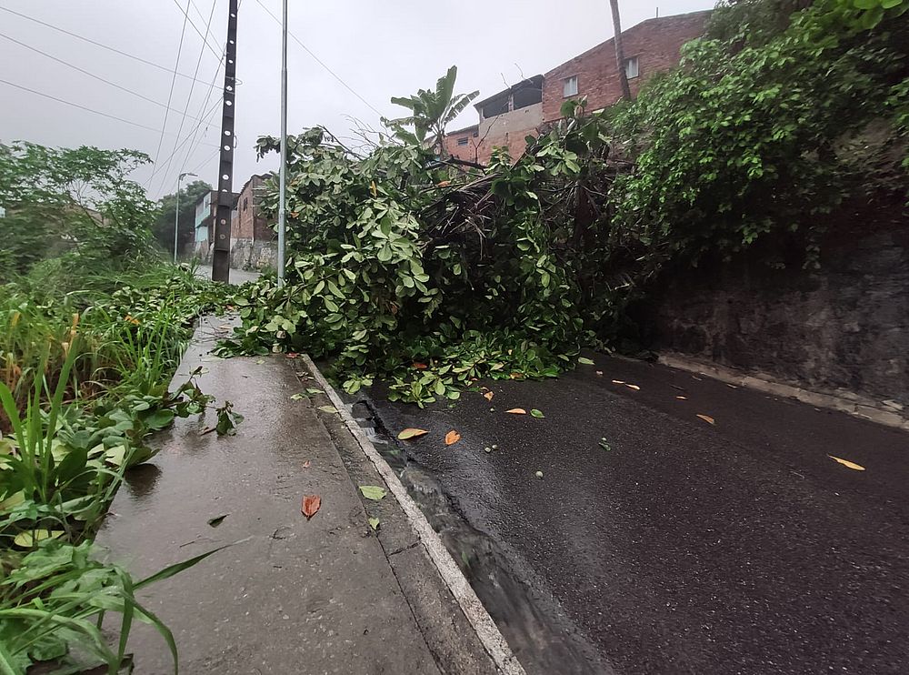A reportagem do programa Balanço Geral Alagoas, da TV Pajuçara, flagrou uma árvore caída na Ladeira da Moenda no início da manhã. A via ficou bloqueada e os bombeiros trabalham na remoção da árvore. No mesmo local, houve deslizamento de barreira.