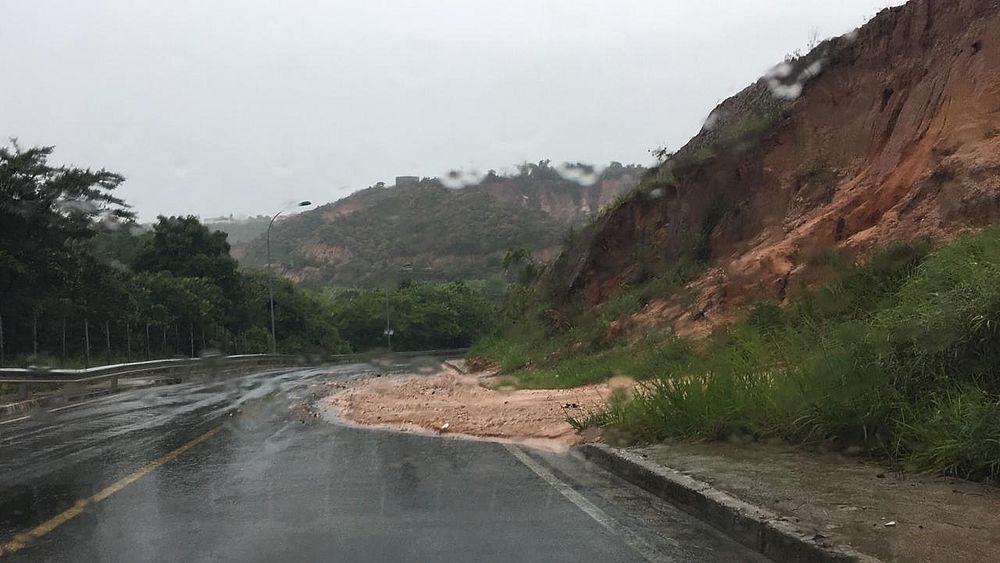 Em outros pontos, como na Avenida Pierre Chalita, houve deslizamento de barreira. A pista já molhada também se encontra suja de terra.