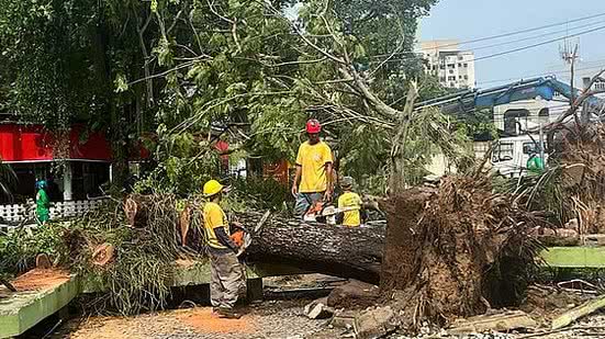 Equipes da Secretaria de Iluminação atuam no restabelecimento de energia dos locais mais afetados em Itaipuaçu. Toda ação emergencial está sendo realizada para a desobstrução de fios energizados nas ruas e a retirada de braços de luminárias quebrados. Algumas ruas foram interditadas. Equipes operacionais da Secretaria de Trânsito de Maricá auxiliam os motoristas.