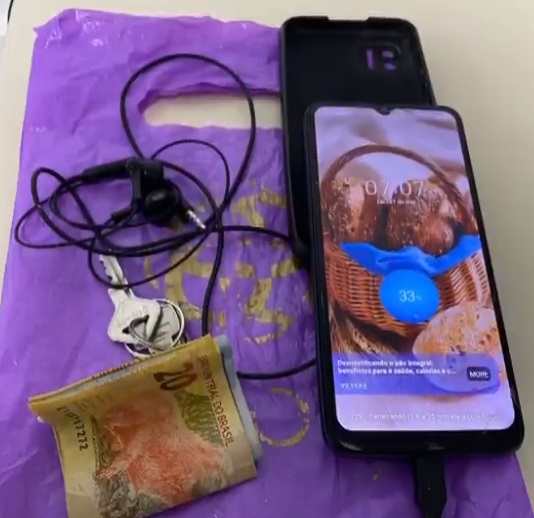 | Vítima estava com celular e outros pertences (Crédito: Reprodução/Video) |