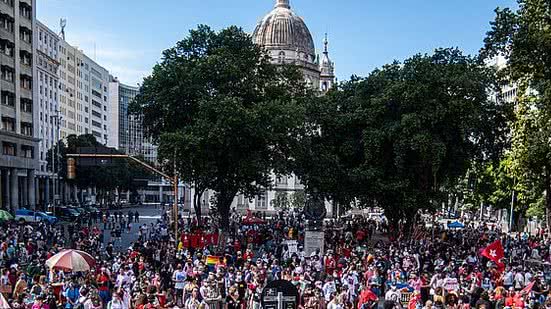 O centro do Rio reuniu manifestantes, na manhã de hoje. Com faixas e cartazes, eles reivindicam entre outras ações, mais rapidez no processo de vacinação contra a covid-19. Os manifestantes se concentraram no Monumento à Zumbi, próximo ao Sambódromo, na Avenida Presidente Vargas, de onde saíram em passeata até a Cinelândia.