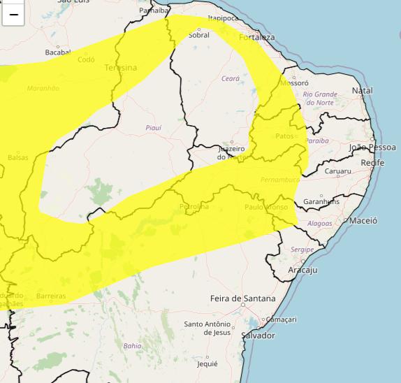 Alerta de baixa umidade também é emitido para Alagoas - O Instituto Nacional de Meteorologia (Inmet) também emitiu, na manhã desta quarta-feira, um alerta amarelo de baixa umidade para 20 municípios de Alagoas. Segundo o órgão, a umidade relativa do ar deve variar entre 30% e 20%, o que pode causar um baixo risco de incêndios florestais e danos à saúde.
