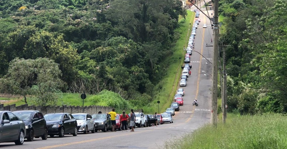 Dezenas de carros participaram da manifestação contra o Bolsonaro em Varginha, MG — Foto: Bruna Mangiapelo/ G1