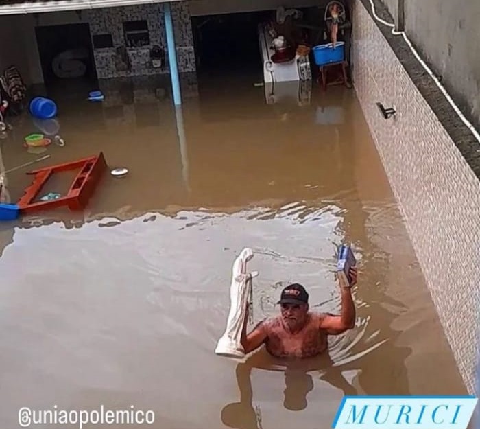 "Resgate" da Santa - Em Murici, uma cena emocionou a web. Com a casa tomada pela água, correndo risco, um idoso – que segundo testemunhas já teria saído da residência – voltou para pegar uma imagem de uma Santa e uma bíblia. A demonstração de fé viralizou na internet.