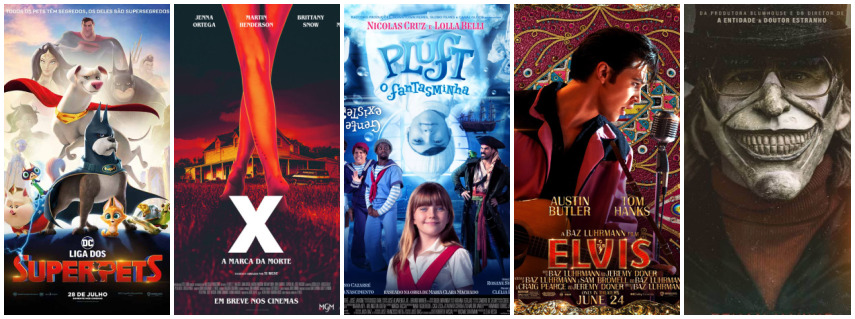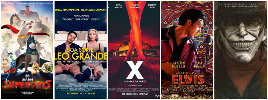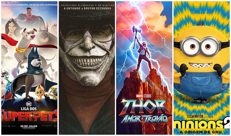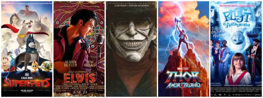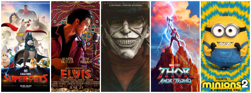 Na parte alta da cidade, 'DC Liga dos Super-Pets' chega com destaque. Ainda em exibição 'Elvis', 'Telefone Preto', 'Thor: Amor e Trovão' e 'Minions 2: A Origem de Gru'.