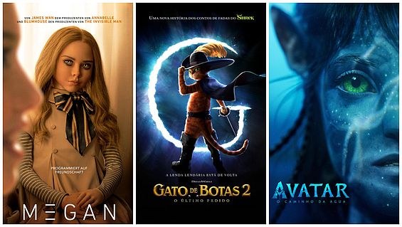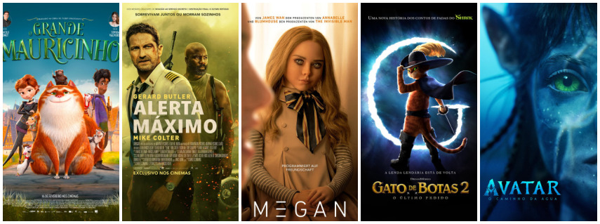 O público ainda poderá assistir ao novo longa de Tom Hanks ‘O Pior Vizinho do Mundo’; a ação ‘Alerta Máximo’; o drama do aclamado diretor Damien Chazelle ‘Babilônia’; os longas de terror ‘M3gan’ - do mesmo produtor da saga ‘Invocação do Mal’ - e ‘A Profecia do Mal’; as cinebiografias ‘Os Fabelmans’ (Steven Spielberg) e ‘I Wanna Dance With Somebody’ (Whitney Houston); a animação ‘Gato de Botas 2: O Último Pedido’ e ‘Avatar: O Caminho da Água’ - que já se tornou a quarta maior bilheteria da história do cinema.