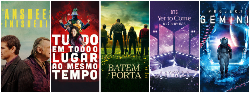 Na Cruz das Almas, ‘Os Banshees de Inisherin’, ‘Tudo em Todo Lugar ao Mesmo Tempo’, ‘Batem à Porta’, ‘BTS: Yet to Come’, ‘Gemini - O Planeta Sombrio’ e ‘O Grande Mauricinho’ estreiam. ‘O Pior Vizinho do Mundo’, ‘Alerta Máximo’; ‘Babilônia’, ‘M3gan’, ‘A Profecia do Mal’, ‘Os Fabelmans’, ‘I Wanna Dance With Somebody’, ‘Gato de Botas 2: O Último Pedido’ e ‘Avatar: O Caminho da Água’ seguem disponíveis.