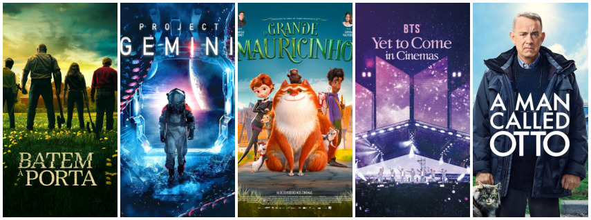 Ainda tem espaço para a estreia do novo suspense épico ‘Batem à Porta’ - do aclamado diretor M. Night Shyamalan (‘O Sexto Sentido’) -, a gravação do show do BTS, a ficção ‘Gemini - O Planeta Sombrio’ e a mais nova animação ‘O Grande Mauricinho’. Confira, agora, os trailers e mais informações sobre os longas que chegam aos cinemas nesta quinta-feira (02).
