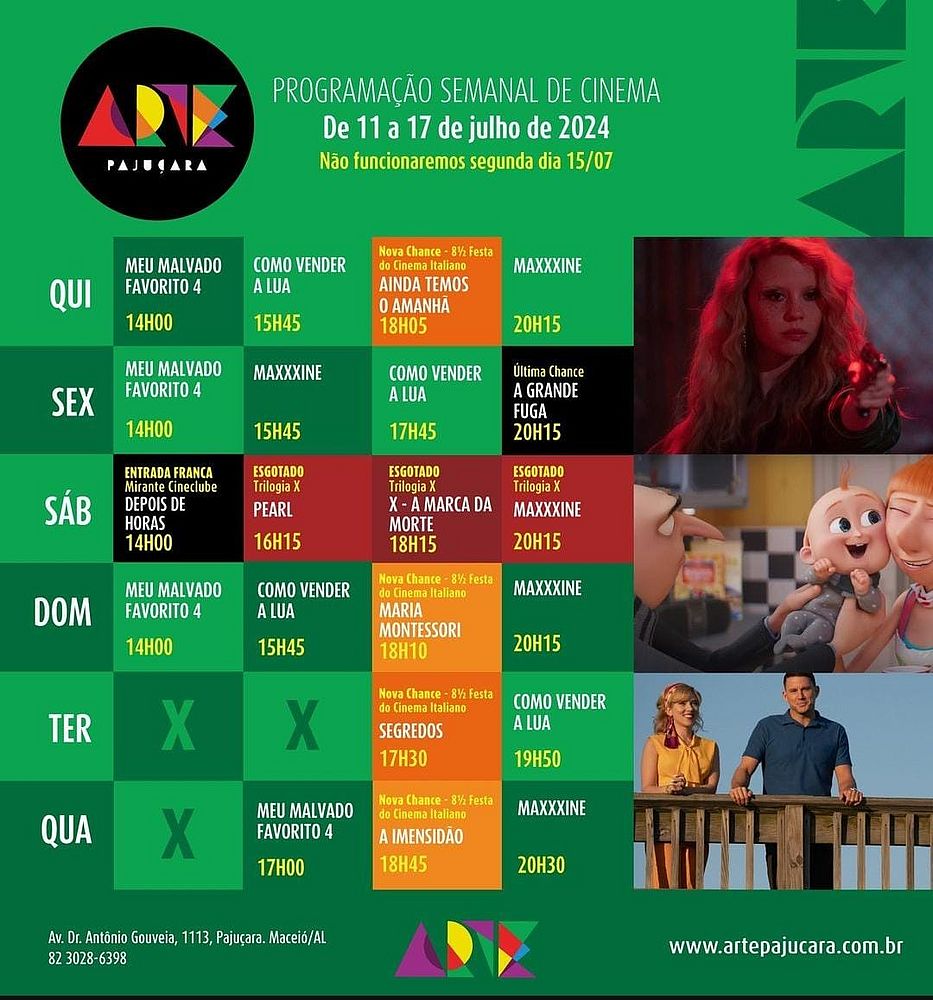 Disponível: Arapiraca Partage Shopping e Cinesystem (Parque Shopping).