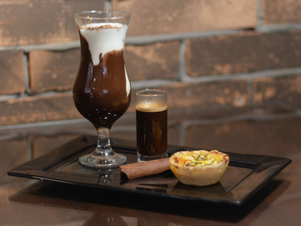 Café da Vila: Expresso com calda de chocolate, leite vaporizado com aromas de frutas.