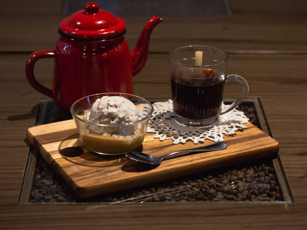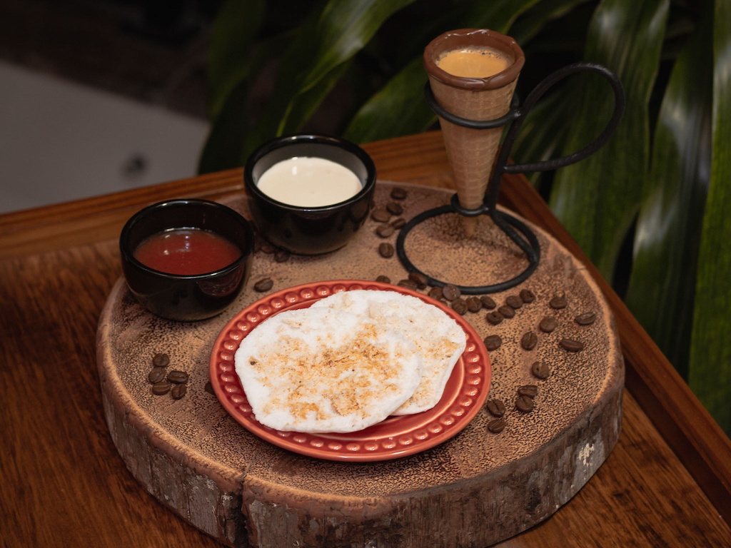 Nakaffa: Café coado com fava de aridan, acompanhado com palito de cana-de-açúcar.