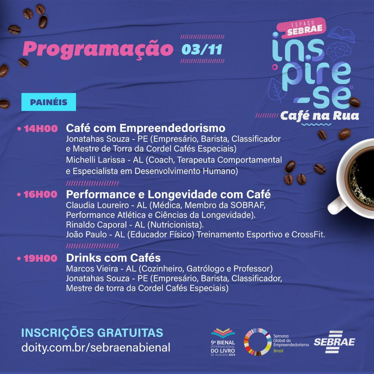 Agora fica ligado: a abertura do Maceió Coffee é no dia 3 de novembro, em frente ao Armazém Usina no Jaraguá, com degustação gratuita de café para brindar a bebida mais amada do Brasil na Bienal do Livro. Depois é “perna para que te quero” e fazer o circuito pelas cafetarias de Maceió. O evento tem o patrocínio do RDV Roasters (microtorrefação de café especial alagoana) e apoio do Sebrae Alagoas, Empresa Rallu e Elemidia.