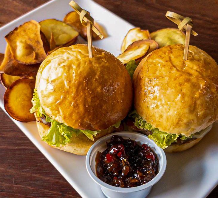 Já os pães caseiros de batata doce estão dando vida a dois minis sanduíches: o hambúrguer de carne de sol com queijo coalho grelhado, bacon crocante, tomate confitado e alface . E a segunda opção, com os queijos coalho e de manteiga, e ainda recebe tomate confitado. Para acompanhar, chips de batata doce, geleia de pimenta, mel de engenho e pesto de castanha de caju.