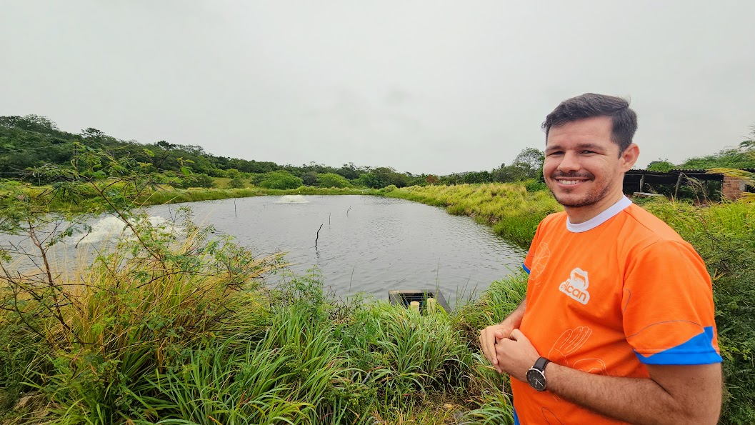 Williams Lourenço em dos tanques de camarão