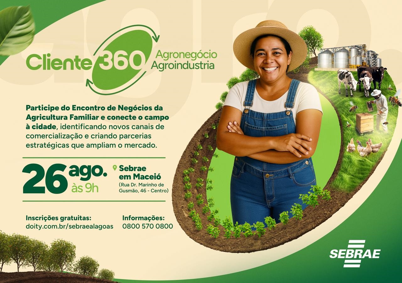 As inscrições para o Encontro de Negócios da Agricultura Familiar, no dia 26 de agosto, das 9h às 12h, no Sebrae Alagoas, em Maceió, podem ser realizadas por meio do link a seguir: