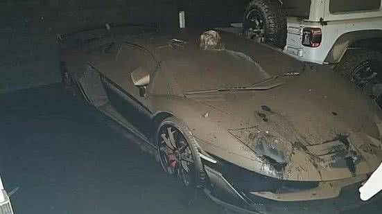O carro mais caro da lista é o Lamborghini Aventador SVJ, com preço de R$ 8,2 milhões no Brasil. Na imagem, ele está coberto de sujeira. As portas e janelas laterais estão banhadas em fuligem, provavelmente, a água também entrou na cabine, o que significa que poucas partes internas podem ser salvas.