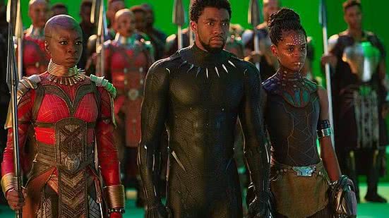 Foi realizada uma exibição de "Pantera Negra" em um anfiteatro ao ar livre, com a presença de muitas crianças vestindo fantasias do personagem.