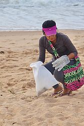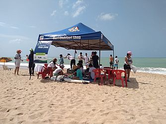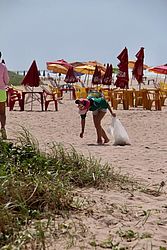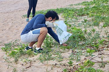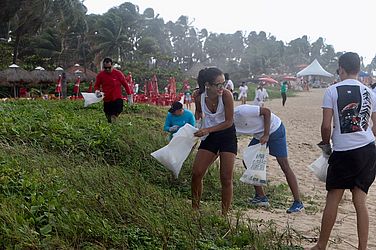 A concentração aconteceu na Barraca Samburá, às 7h30, e logo depois, profissionais da educação, saúde, ambientalistas, esportistas, profissionais liberais, estudantes, e até crianças, fizeram uma "limpa" na praia. O objetivo da ação também é conscientizar a população.