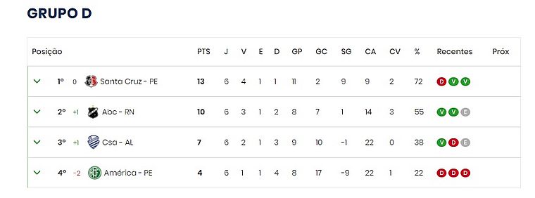 Pelo Grupo D, ABC e CSA empataram em 2 a 2 também no sábado, no Frasqueirão, em Natal. Veterano anotou os dois gols do Alvinegro e Andrew fez os outros dois do Azulão. O time alagoano somou sete pontos e ficou em terceiro. O ABC foi o vice-líder, com 10 pontos.