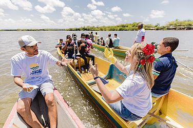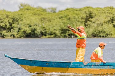 A Prefeitura de Maceió promoveu, neste sábado (11), mais uma ação do projeto Lagoa Limpa. O “Pinto com Sururu: frevo na Lagoa Mundaú” é fruto de uma parceria entre a Superintendência Municipal de Desenvolvimento Sustentável (Sudes), a Fundação Municipal Cultura (FMAC) e a Secretaria de Assistência Social (Semas). Objetivo foi coletar resíduos e incentivar a cultura na Orla Lagunar, no Vergel do Lago. Essa foi a segunda vez que a que o projeto foi até a comunidade, mas agora, com o frevo embalando a coleta dos resíduos.