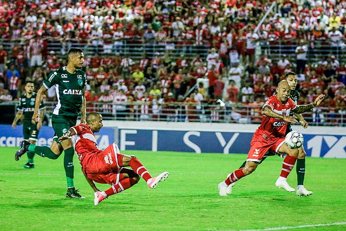Tímido em campo, o Goiás não se assanhava. Os visitantes aceitavam a pressão regatiana sem oferecer reação. O CRB tomou gosto e seguiu indo para cima. Aos 22', Willians Santana disparou pela direita, tirou o goleiro na velocidade e rolou para trás: Mazola desviou e estava pronto para comemorar, mas David Duarte colocou o pé de forma providencial e a bola subiu. Foi o último lance de perigo da primeira etapa. Com mais volume de jogo, o Galo pressionou e criou chances, mas não saiu do zero com o Verdão.